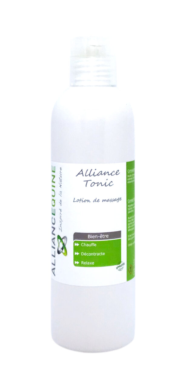 Alliance Tonic est une huile de massage à l’Aloé vera et l’amende douce, qui va stimuler la circulation sanguine en cas de contusion ou hématome. Elle s’utilise également avant l’effort pour chauffer et préparer les muscles et articulations et après l’effort pour décongestionner et optimiser la récupération. Bien mélanger avant l’utilisation et utiliser avec un gant en latex de préférence. Usage externe