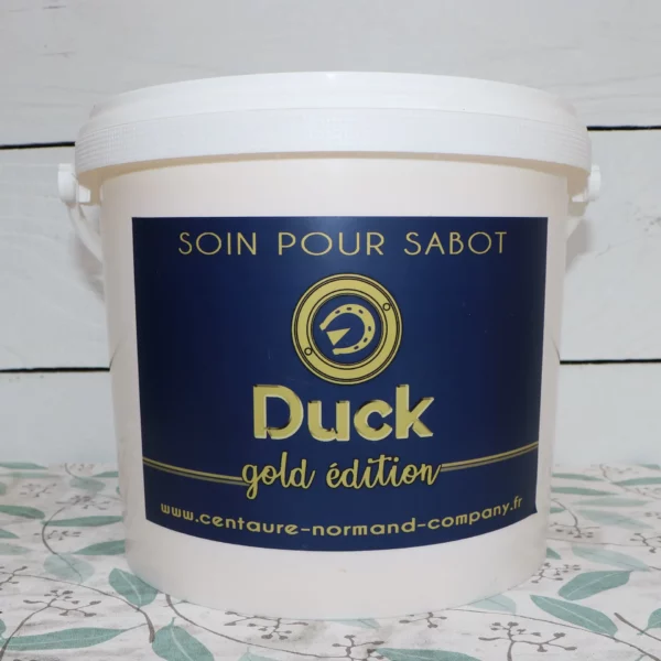 DUCK GOLD EDITION, c’est la version dorée de notre célèbre graisse pour sabots. Ce soin est composé exclusivement de produits 100% naturels et intègre notamment de la graisse de canard, connue pour ses propriétés hydrofuges et nourrissantes. DUCK GOLD EDITION apporte une réelle protection, une hydratation et un confort optimal du sabot.